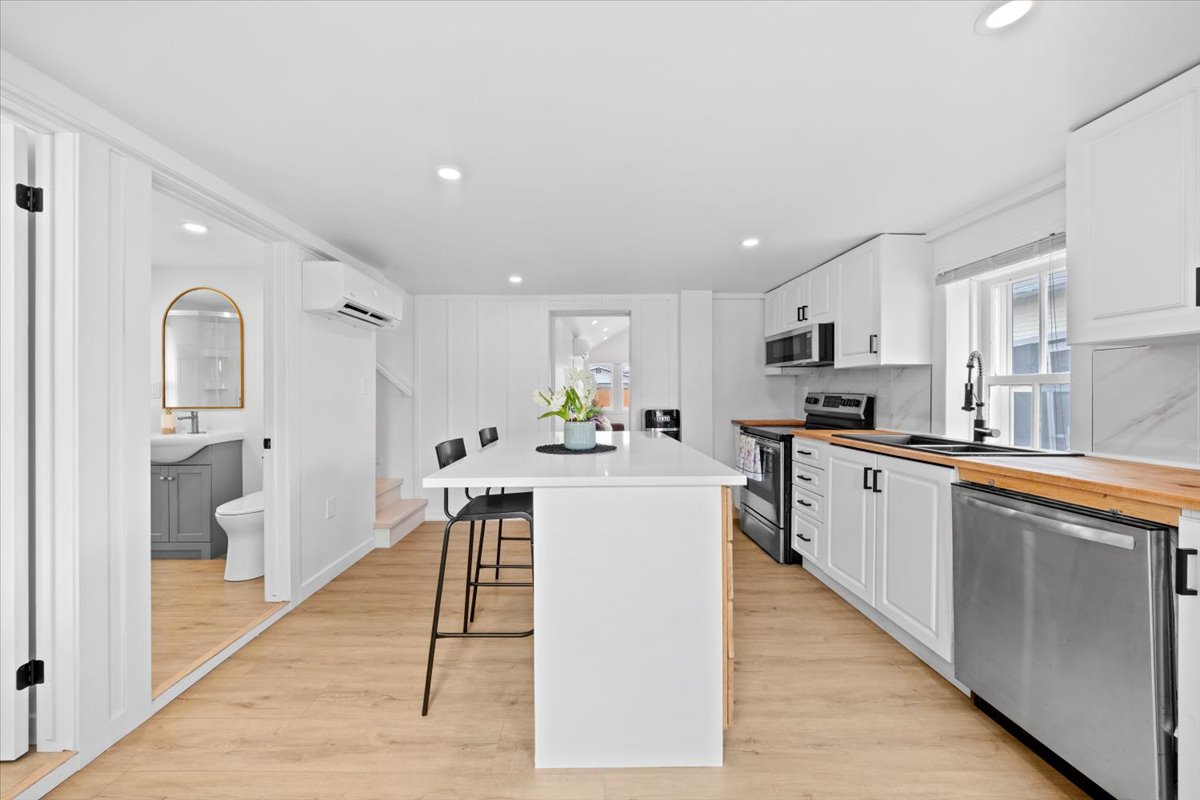 Welcome to this bright and inviting 2-bedroom, 2-bath home, perfectly situated on a generous 50' x 100' lot in the heart of Kemptville. This move-in ready property offers a comfortable and stylish living environment with thoughtful updates throughout. The main floor features a modern kitchen, open living spaces, and a versatile den, perfect for a home office or additional living area. Enjoy fresh finishes, plenty of natural light, and a functional layout that flows seamlessly from room to room. Step outside to a fully fenced yard with a deck, patio, and well-maintained outdoor spaces, ideal for relaxing or entertaining. With its appealing updates, great layout, and prime in-town location close to shops, schools, and amenities, this home provides a rare opportunity for buyers seeking comfort, style, and convenience.