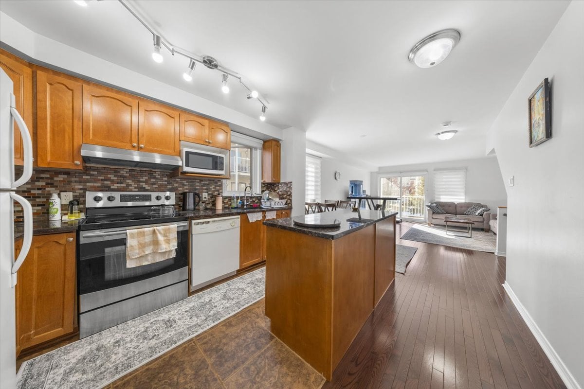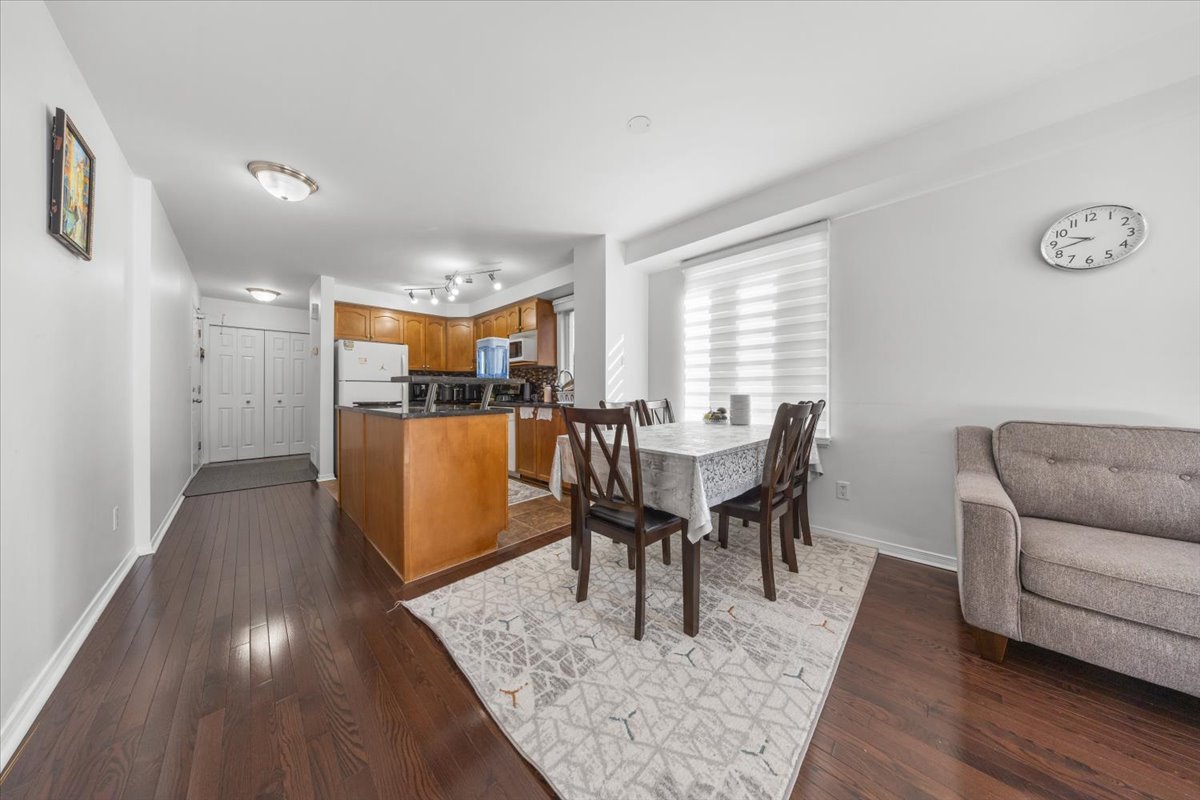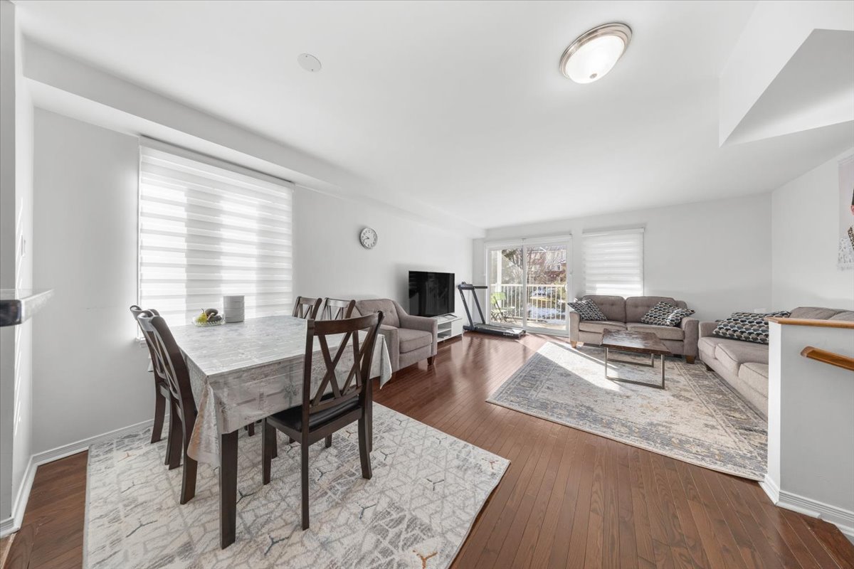 MOVE-IN READY END UNIT! Welcome to this beautifully maintained 2 bedroom, 2 bath condo ideally located in the heart of the community, offering both convenience and privacy. This bright and spacious end unit benefits from extra windows, filling the home with natural light throughout. The open-concept living and dining area provides a functional layout perfect for both everyday living and entertaining, while the well-appointed kitchen offers ample cabinetry and workspace. Downstairs, you'll find two generously sized bedrooms, including a comfortable primary retreat, along with a full bath, plus a second bathroom for added convenience. Enjoy outdoor living with your own private area, perfect for relaxing or hosting. Located just minutes from transit, parks, shopping, and everyday amenities, this centrally positioned home is ideal for first-time buyers, investors, or anyone seeking low-maintenance living in a fantastic location.