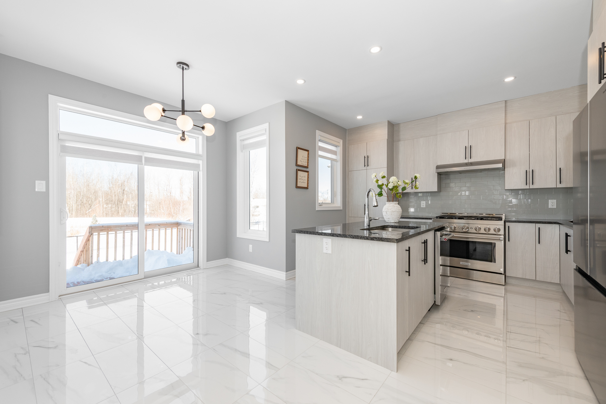 and mature trees from both the living room and the chef's kitchen. Here, you'll find floor-to-ceiling
