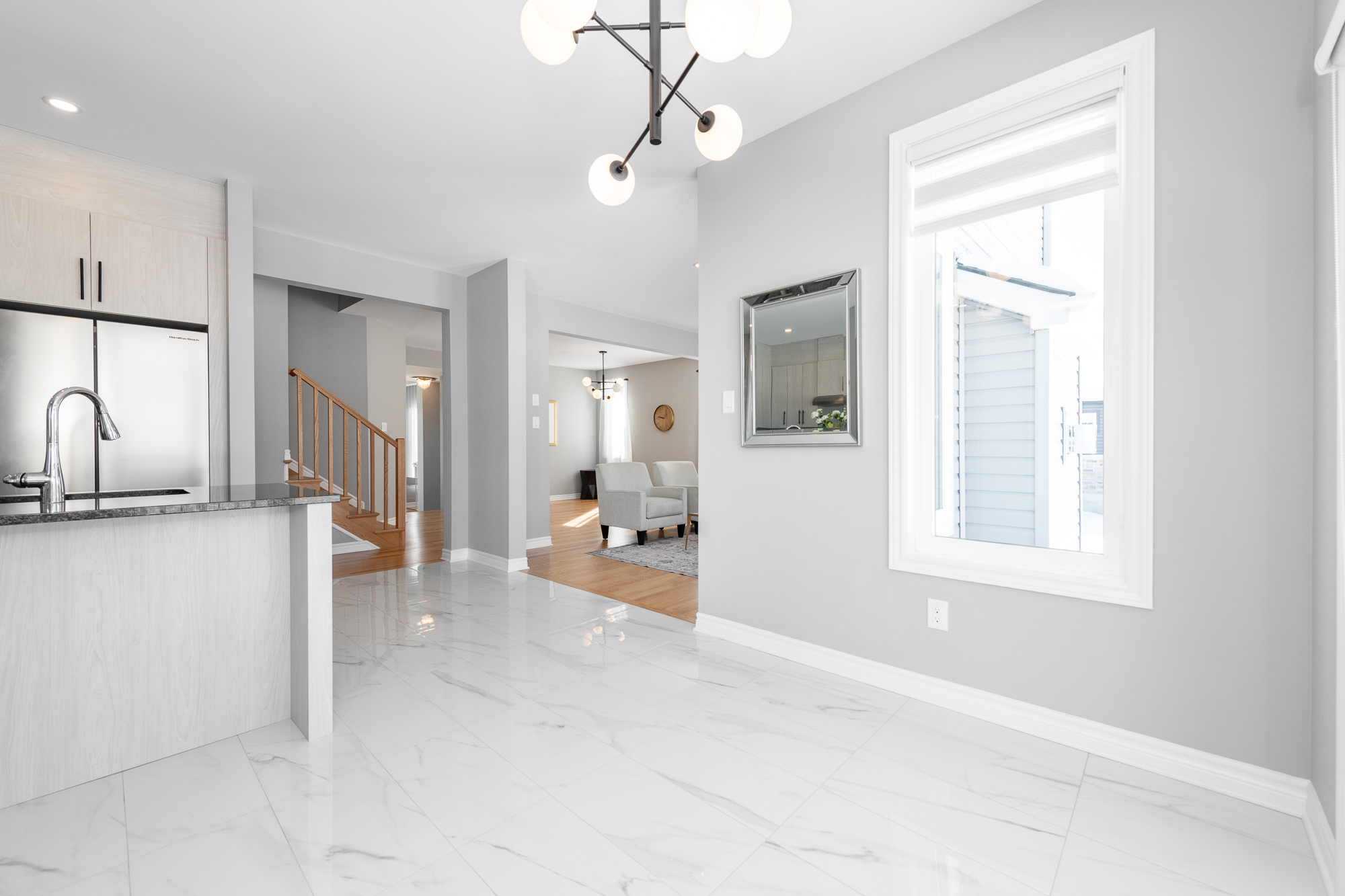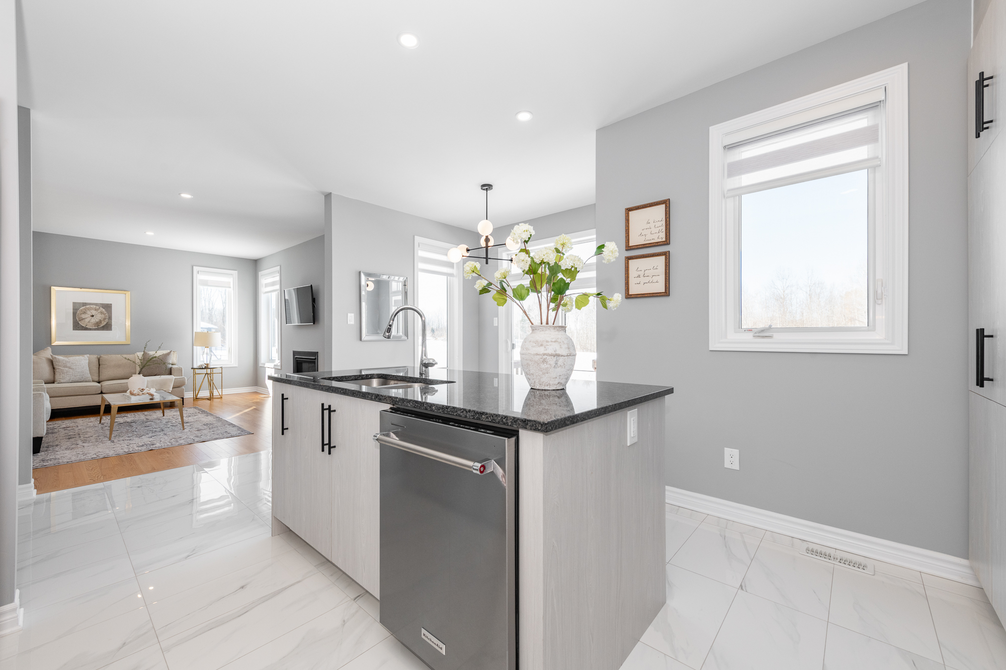 elevated finishes define every room. The bright open-concept main floor captures serene views of the water